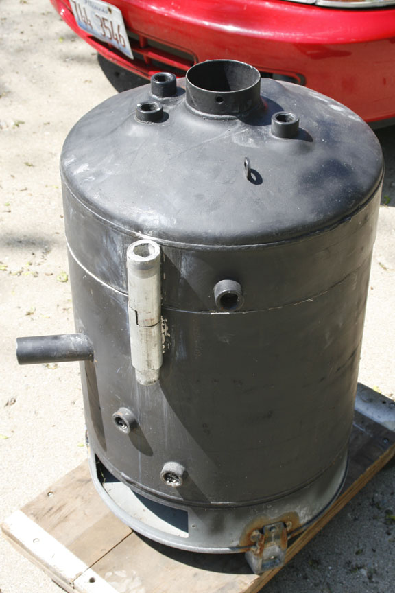I decided to make this out of a tank from a water heater. After stripping off the sheet metal and insulation I finally got to the tank. Here are some pictures of the melter and one of the burner fired up.