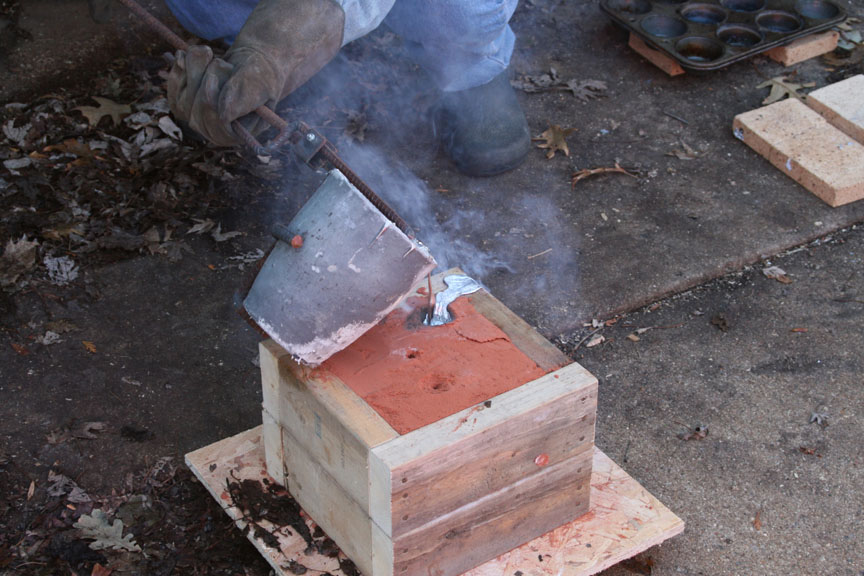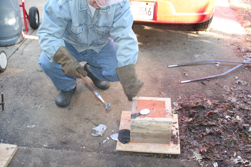 The following pics are when I began to pour the molten aluminum into the mold.